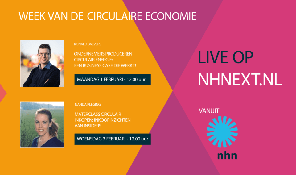 Op woensdag 3 februari om 12:00 geeft Nanda Pleging een masterclass in circulair inkopen met als thema: Inkoopinzichten van insiders. Naast deze livestreams zullen wij als GP Groot ook dagelijks aandacht besteden aan de verschillende circulaire initiatieven vanuit GP Groot op Social Media. Dus houd onze socials in de gaten en volg ons als je niets wil missen! Hieronder vind je de link naar de livestream & Masterclass. Of bekijk het hele programma op: nhnext.nl.