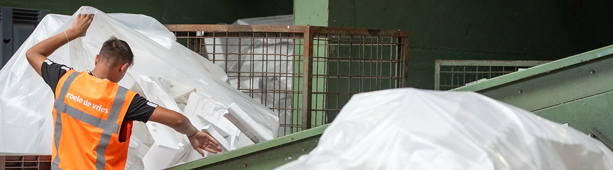 Hoe werkt het recyclen van piepschuim? GP Groot en dochteronderneming Roele De Vries recycling zamelen piepschuim in bij onder andere bedrijven in de logistieke sector en detailhandel. Deze bedrijven scheiden hun piepschuimafval in een aparte container. Voor het hoogwaardig recyclen is het belangrijk dat het piepschuim zo schoon mogelijk blijft en er zo min mogelijk vervuiling tussen zit.